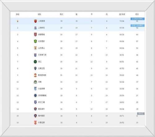 成都蓉城队在倒数第4轮的时候异军突起,一跃力压上海双雄占据榜首宝座。